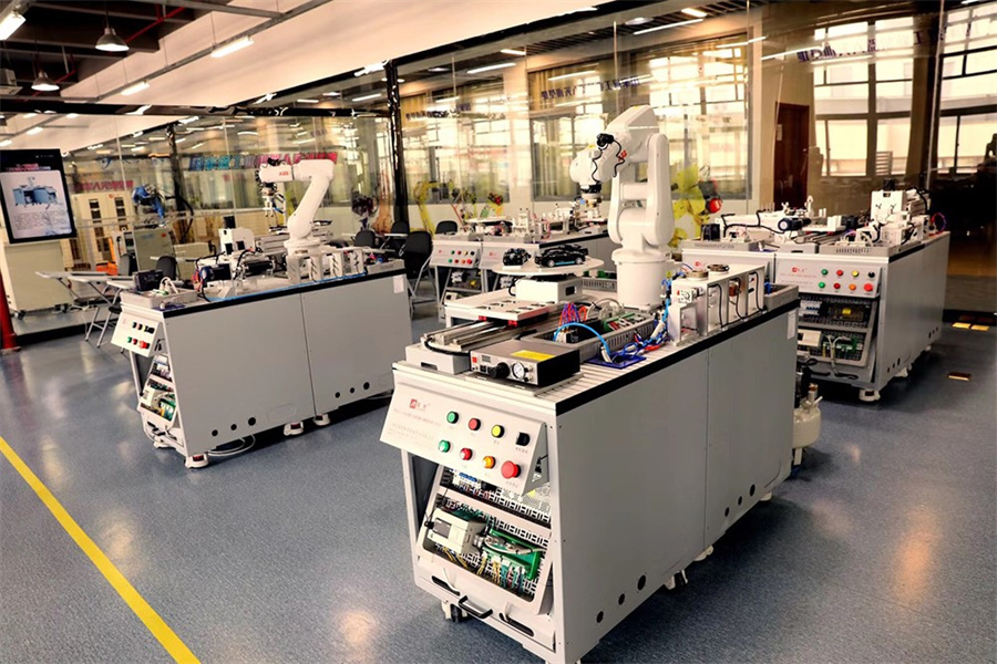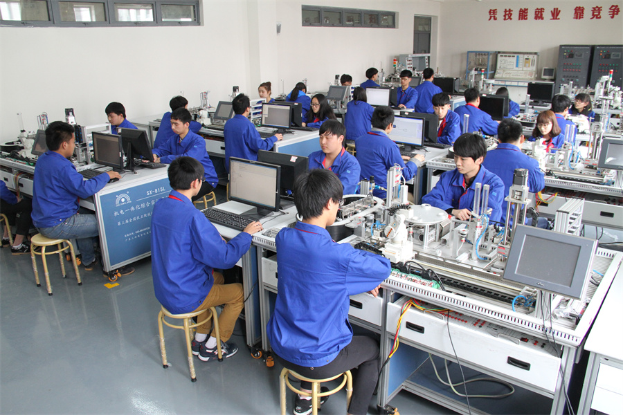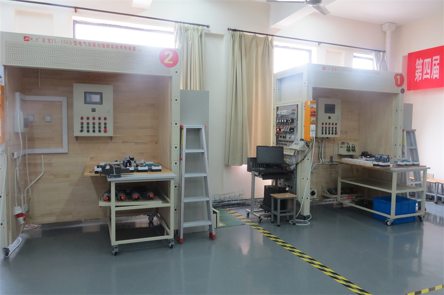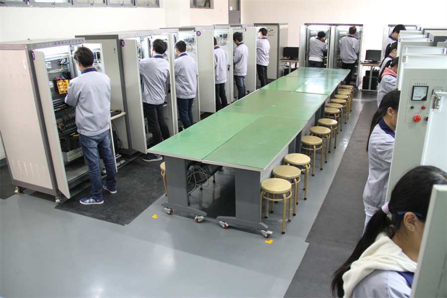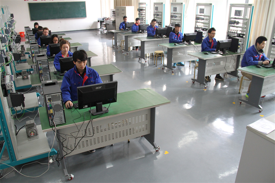 电气自动化实训设备:实训设备先进、结构完整、数量众多,满足从初级到技师不同等级的各类技能训练和社会培训需求。现有电工基本技能、PLC-触摸屏-变频器综合实训室(三菱、西门子)、机电一体化、机床电气电路、电力拖动、电气装置、智能楼宇等13个综合实验实训及考核场所,拥有电工中高级、技师各类实训及考核设备100多台套,可以同时容纳400人的实训。