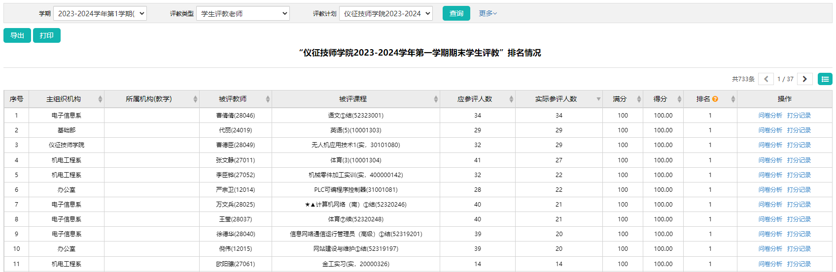评教活动结束后,督导室对评教结果进行了系统整理和认真客观的分析,对反映出来的问题及时反馈,发挥评价的积极作用,真正实现教学相长。