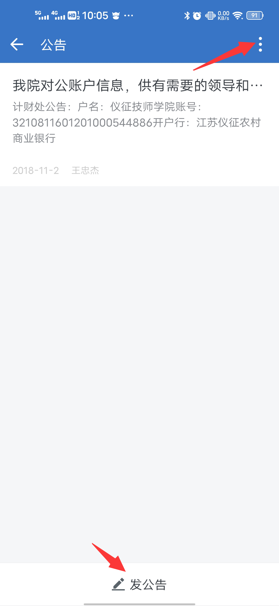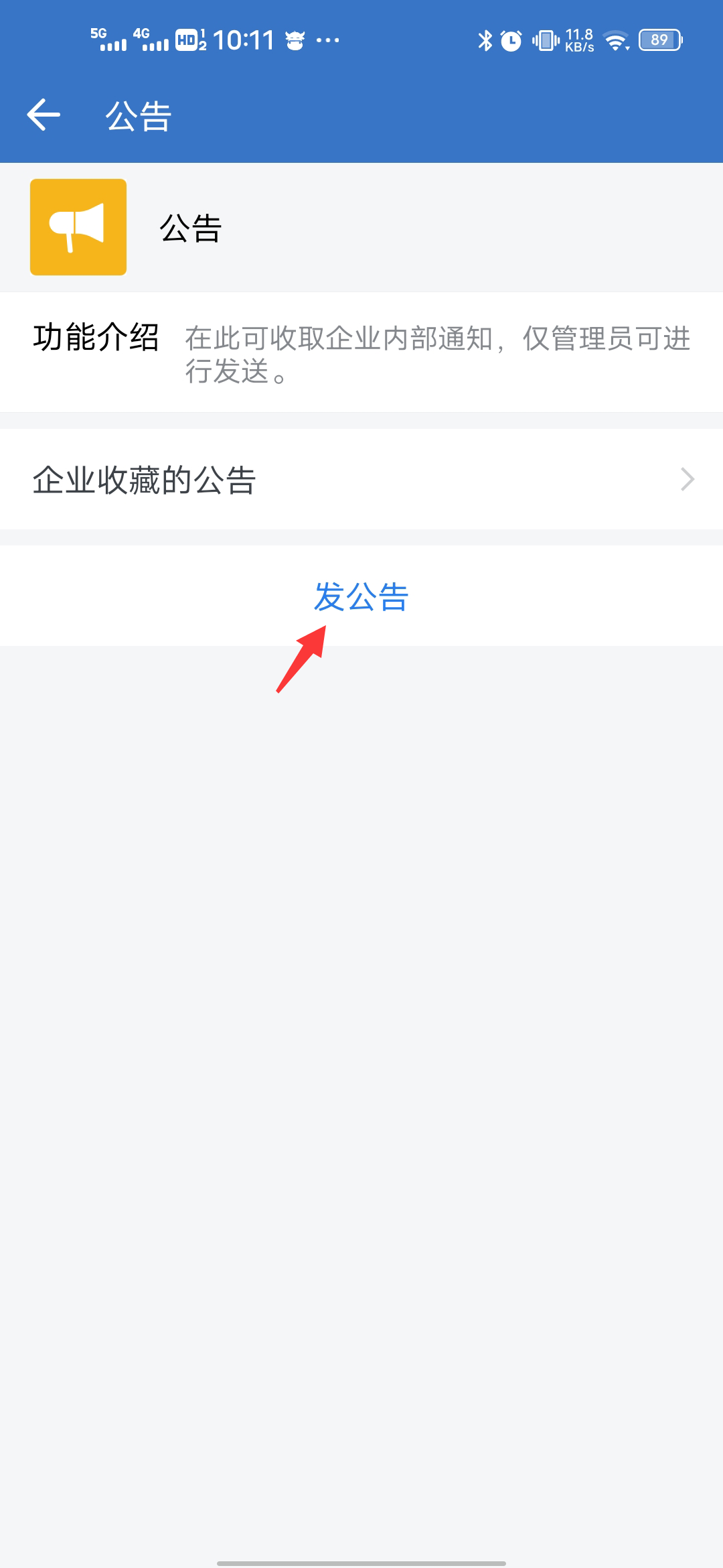 如果下方有“发公告”,直接进入,如果没有,点右上方,出现下一张图示,点“发公告”