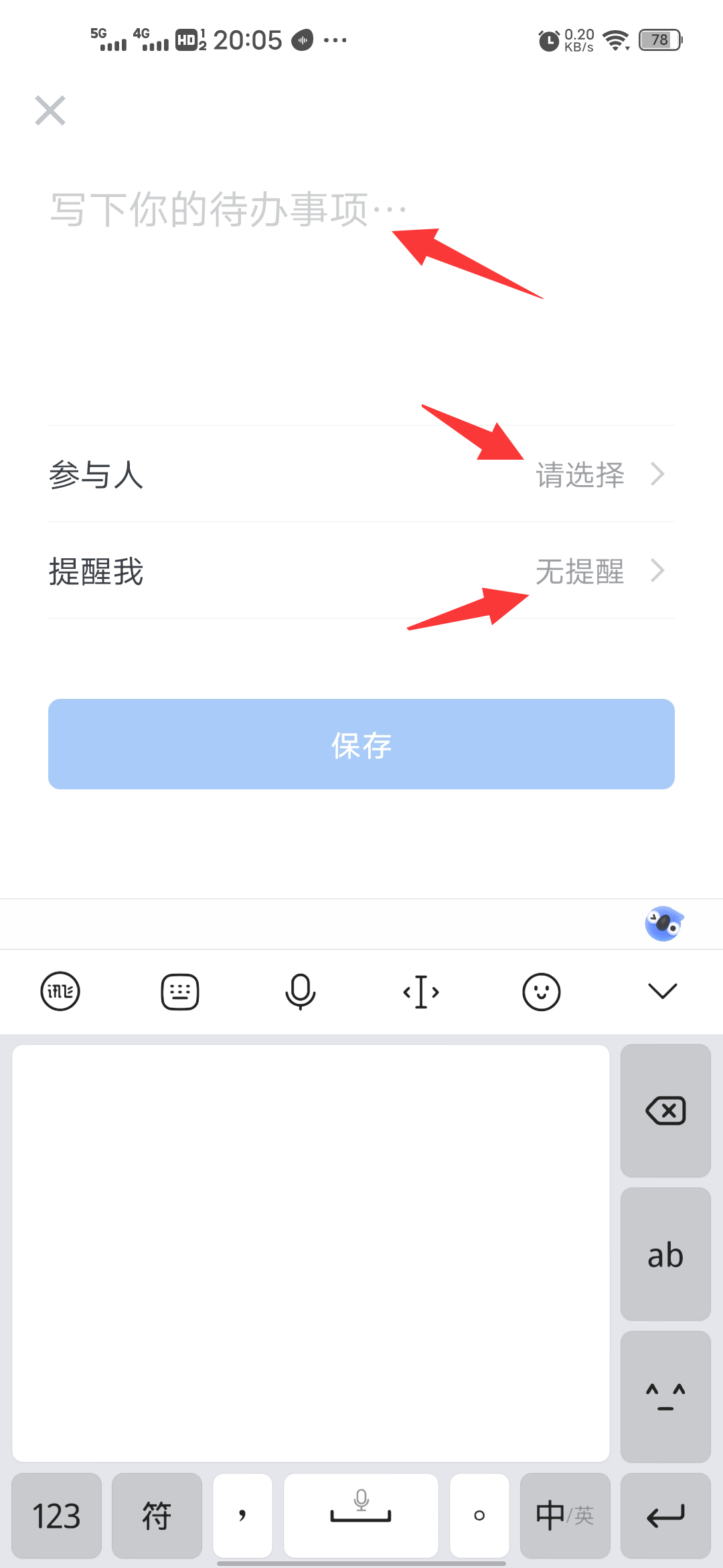 可以新建待办,指定参与人等。
