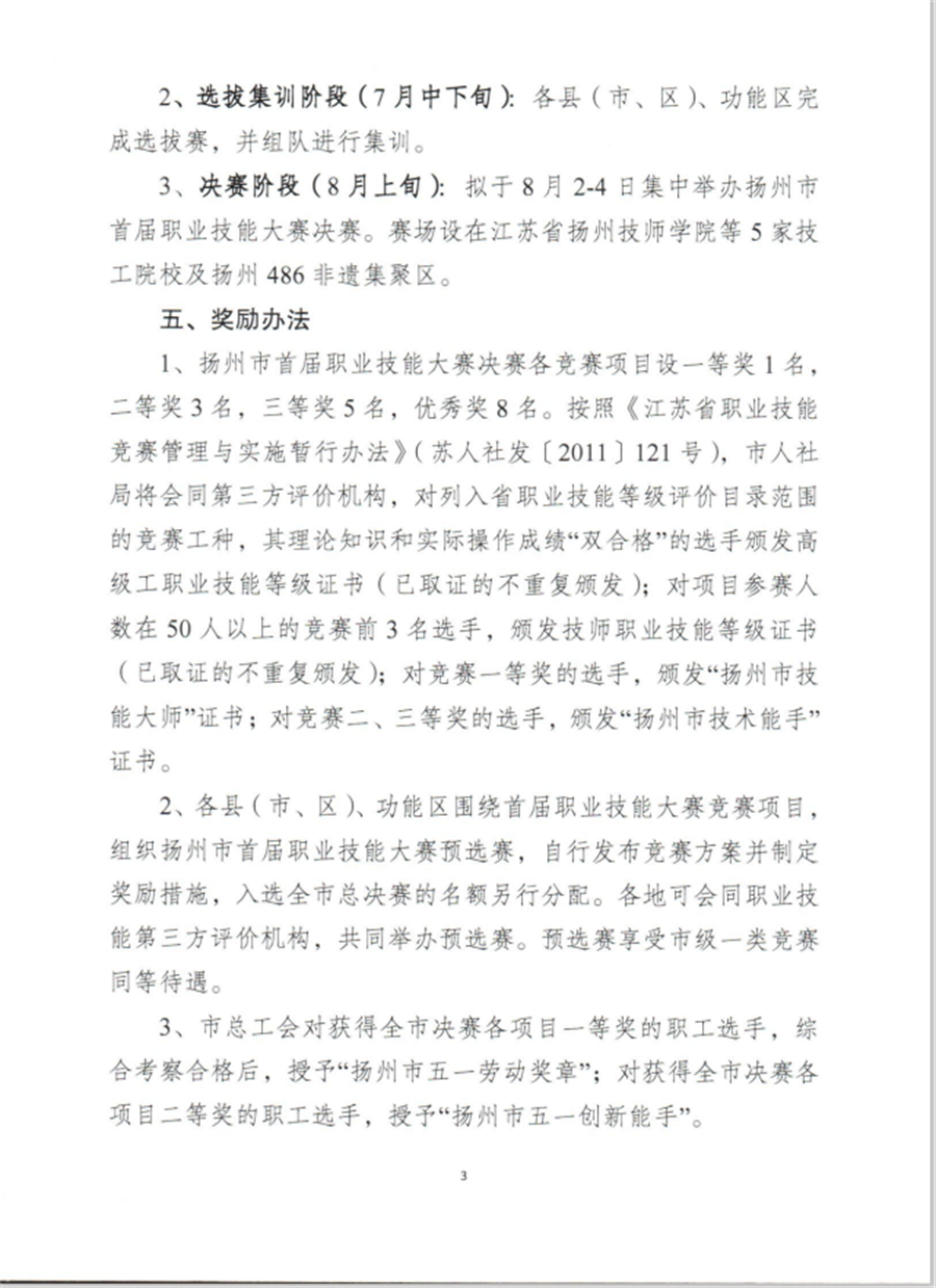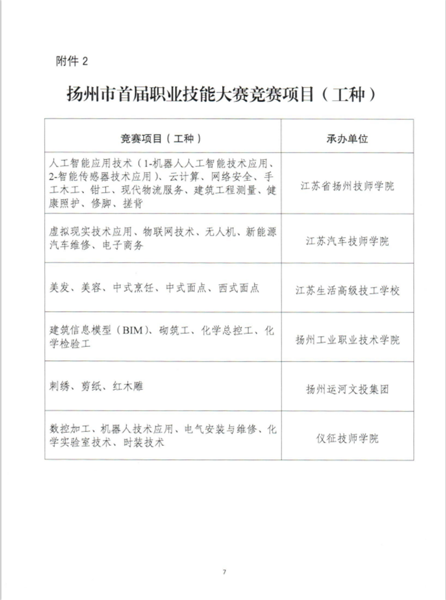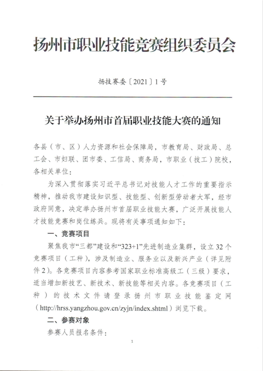 关于举办扬州市首届职业技能大赛的通知