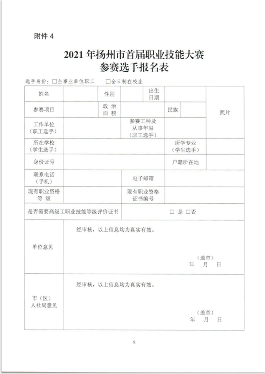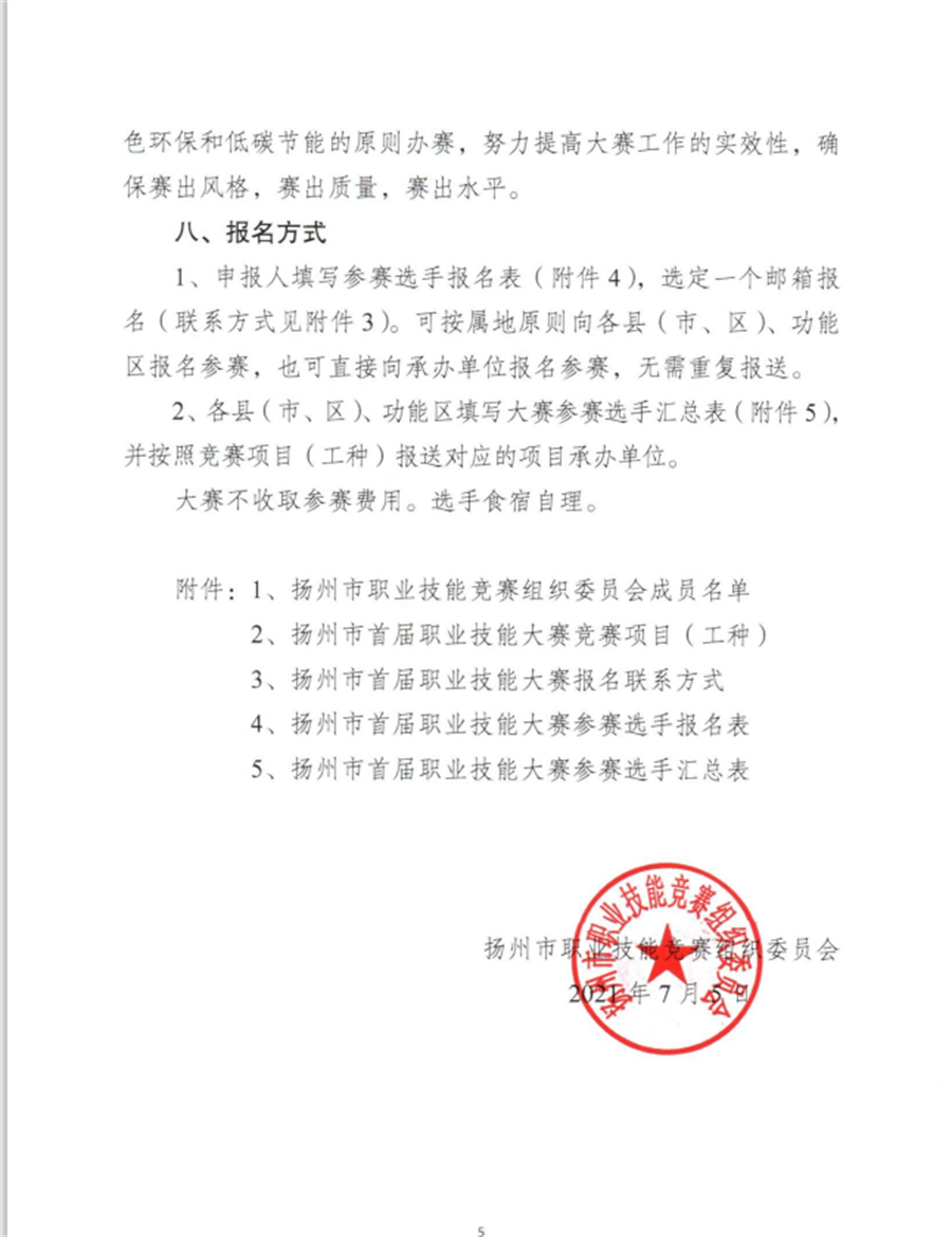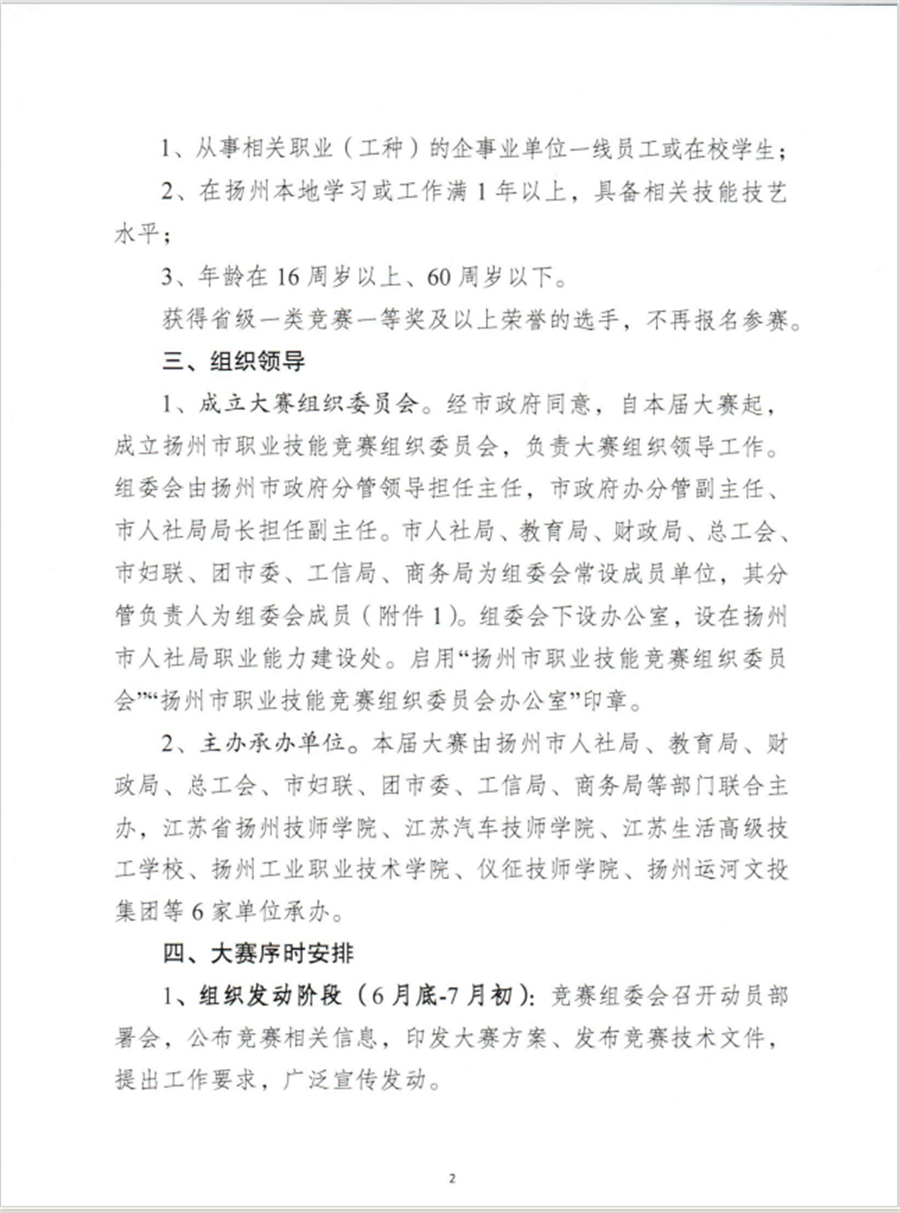 关于举办扬州市首届职业技能大赛的通知