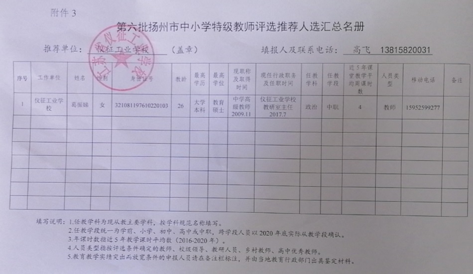 第六批扬州市中小学特级教师评选推荐人公示