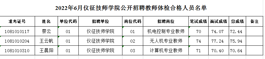2022年6月仪征技师学院公开招聘教师体检合格人员名单