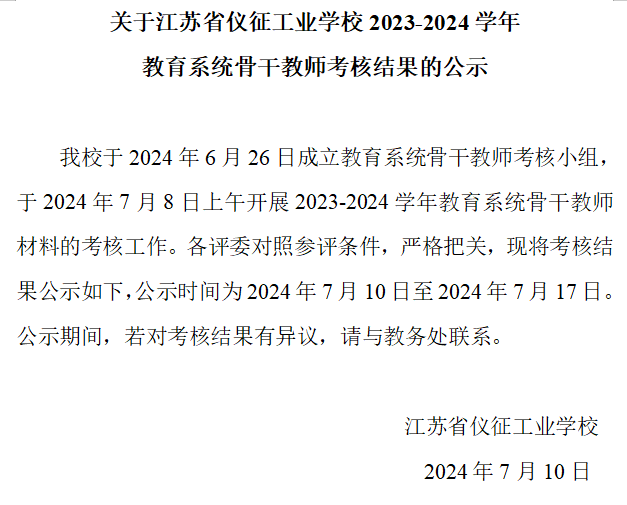 2023-2024年度劳动系统骨干教师考核结果公示(2024.7.10)