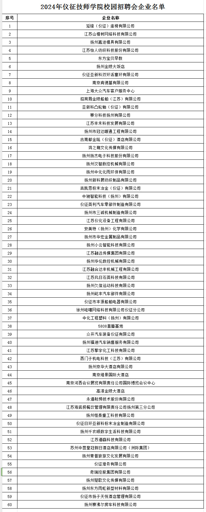 2024年仪征技师学院校园招聘会企业名单