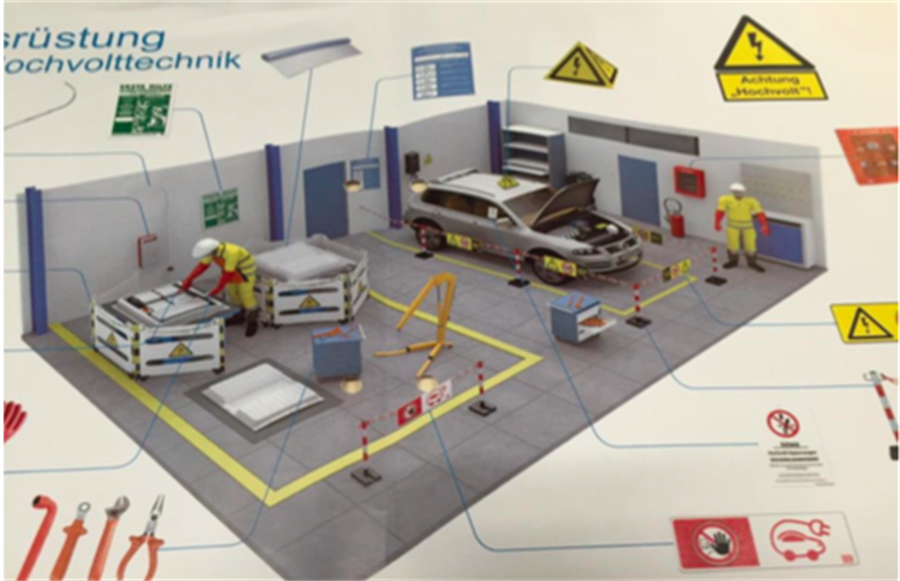 对于转化实施学习/考试模块中所需要的内容和能力需要特别的实验室方案,该方案既需要以学习内容接收者为导向也需要考虑实验室使用的经济性,还要能够积极适应车辆技术在未来的发展。那么目前存在的实验室并不能完全满足需求,尤其在高压电技术领域,因为车辆高压电技术领域有着特别的安全标准规定。