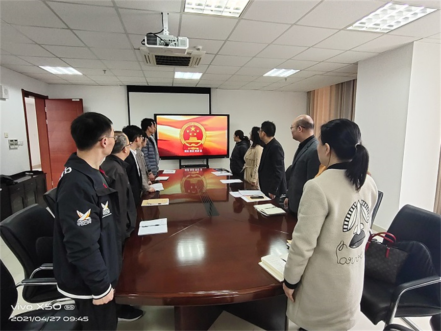 换届选举大会在七楼会议室庄严的国歌声中拉开了帷幕,大会选举产生了新一届支部委员。