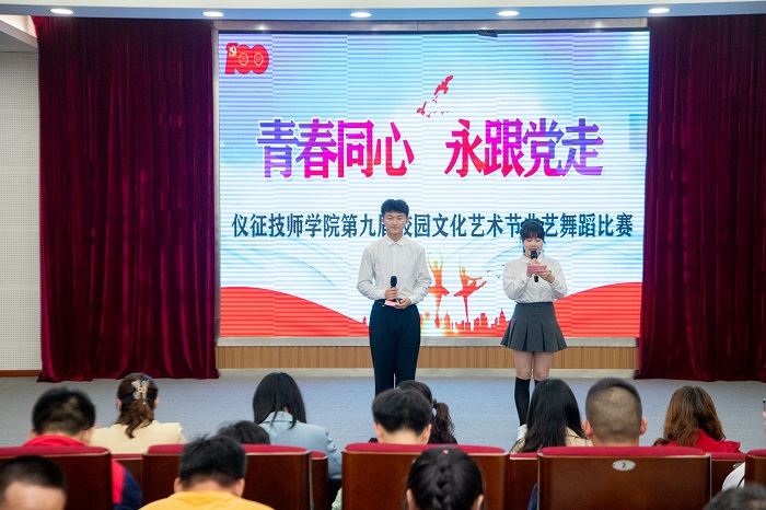 为迎接中国共产党建党一百周年,营造积极向上、清新高雅、健康文明的校园文化氛围,展现我院学生朝气蓬勃、积极向上的精神风貌,给每一位学生提供展现自我才能的舞台。2021年5月27日,仪征技师学院第九届校园文化艺术节曲艺舞蹈比赛在图文信息楼十楼报告厅拉开序幕。经过前期各系部的初选,共有15支队伍进入决赛进行最后的比拼。