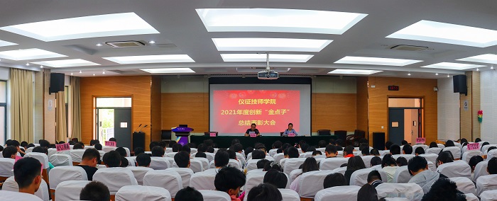 6月4日下午,学院召开2021年度创新“金点子”总结表彰大会,隆重表彰在学院第一届“金点子”评比中涌现出的优秀作品的设计者和指导老师。凌洪斌副院长出席会议并讲话,各系部负责人、创新工作负责人及创新工作室成员、教研室相关同志、全体获奖师生,以及来自于各系部的创新积极分子参加大会。