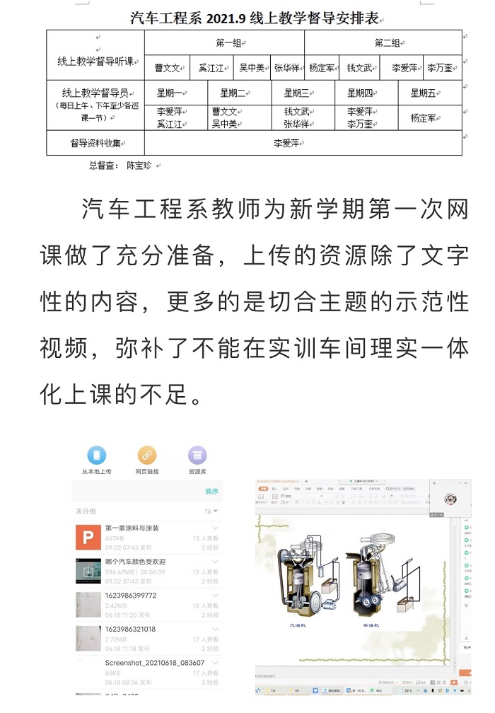 汽车工程系教师为新学期第一次网课做了充分准备,上传的资源除了文字性的内容,更多的是切合主题的示范性视频,弥补了不能在实训车间理实一体化上课的不足。