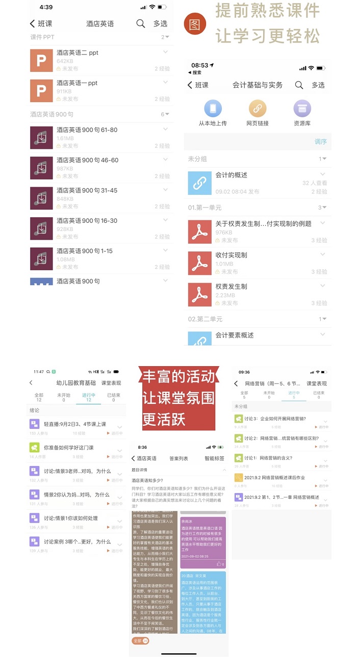 教师们以云班课为主,还借助钉钉,腾讯课堂等教学平台与学生零距离交流,调动学生的积极性,提高课堂效率。