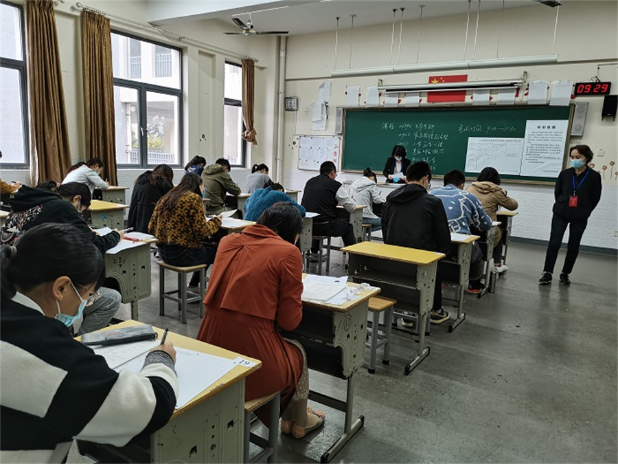 考试前夕,我院教务处牵头相关部门、系部提前谋划、精心部署,确保考场设备设施正常运行,保证考试期间师生的后勤保障服务工作有序开展。为做好本次考试的疫情防控工作,除每场考试前由专人对考场进行消毒外,我院还布置了备用考场、隔离考场,安排了医务人员,确保突发状况能够得到及时、有效处理。此外,每场考试开考前,考生均填写健康情况登记表,考试期间师生全程佩戴口罩。