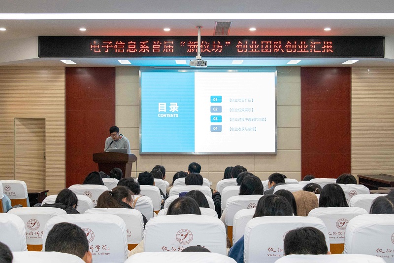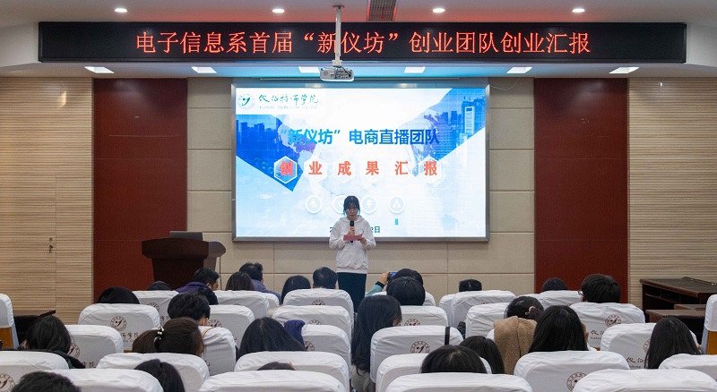 为推进创业教育与专业教育深度融合,深化教育合作与交流,提高应用型人才培养质量和水平。2021年11月19日,电子信息系在B208报告厅成功举行“新仪坊”电商直播创业团队汇报会。汇报会由21电商计算机高级合班李彤同学主持。