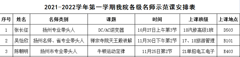 本次活动由教研室具体负责组织实施。活动之前,教研室根据我院各级名师的数量分布、专业类别等特点进行了周密的布置与安排,本学期因疫情影响,线下上课时间较短,共组织了省、市3位名师参与活动。