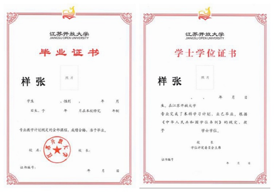 根据教育部有关规定,江苏开放大学专升本、高起专最短学习年限为2.5年,学籍10年有效。学生在学籍期内取得规定的毕业总学分,准予毕业,颁发江苏开放大学毕业证书。毕业证书可在教育部学历证书查询网站——中国高等教育学生信息网(www.chsi.com.cn)查询。本科学生达到授予学位的标准并符合有关规定要求,可申请后获得授予学位证书。