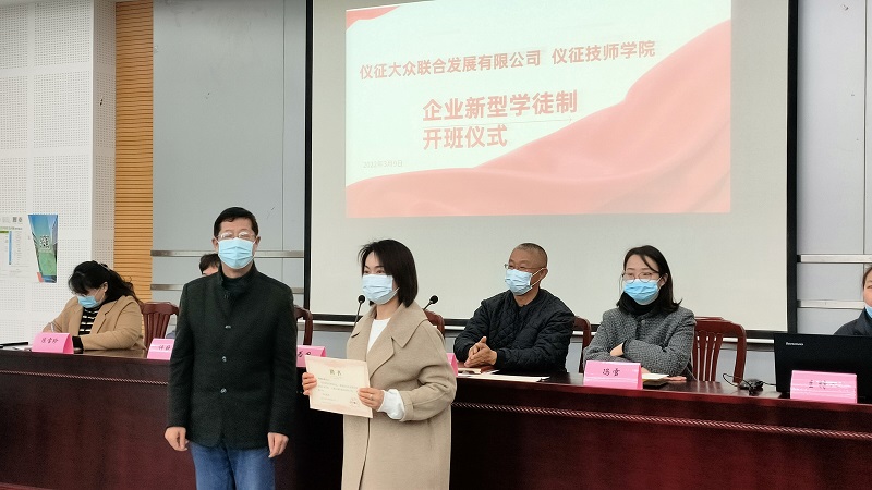 为进一步提升员工综合技能水平,加快企业高技能人才梯队建设,加快适应产业发展新需求的企业后备技能人才培养,助推企业高质量发展,2022年3月9日,汽车工程系在D208隆重举行仪征大众联合发展有限公司-仪征技师学院“企业新型学徒制”开班仪式。