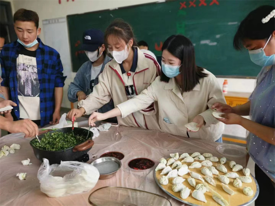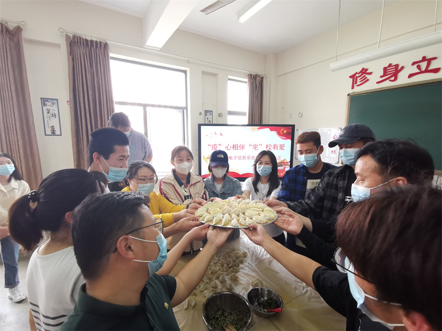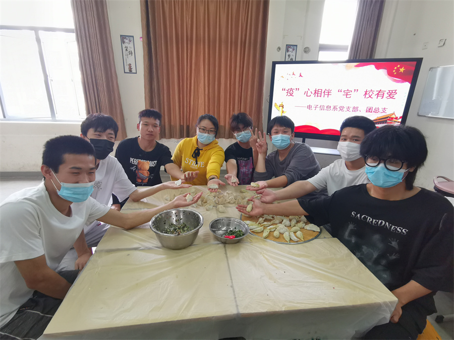 按照疫情防控要求,为进一步巩固“我为群众办实事”实践活动成果,关心学院封闭管理期间在校外地生的学习生活,营造和谐温馨的“宅”校氛围。2022年4月23日上午,仪征技师学院电子信息系党支部联合系团总支组织支部党员、系部留校学生共37人,开展包饺子活动。