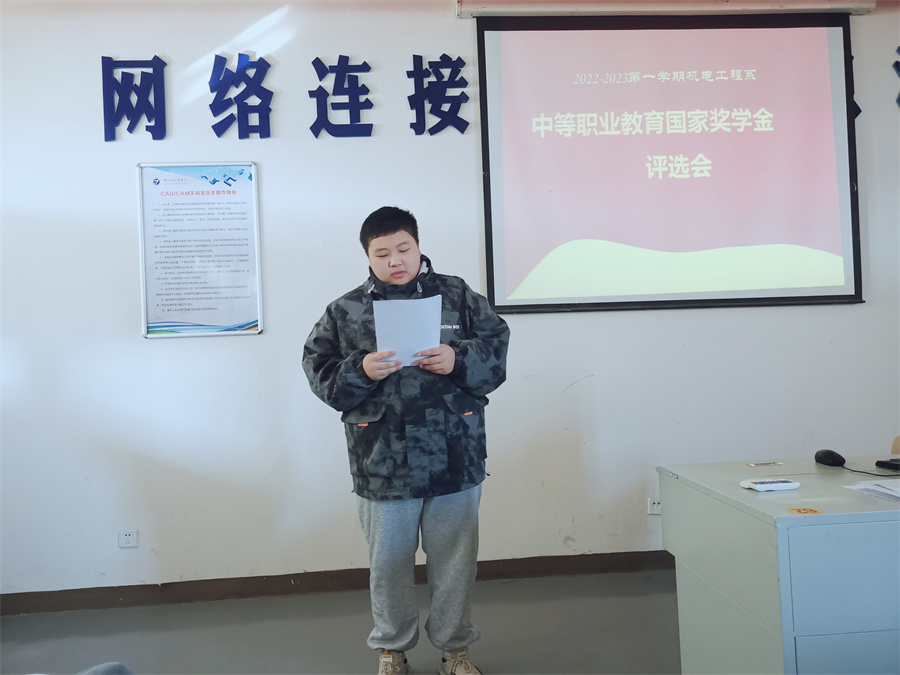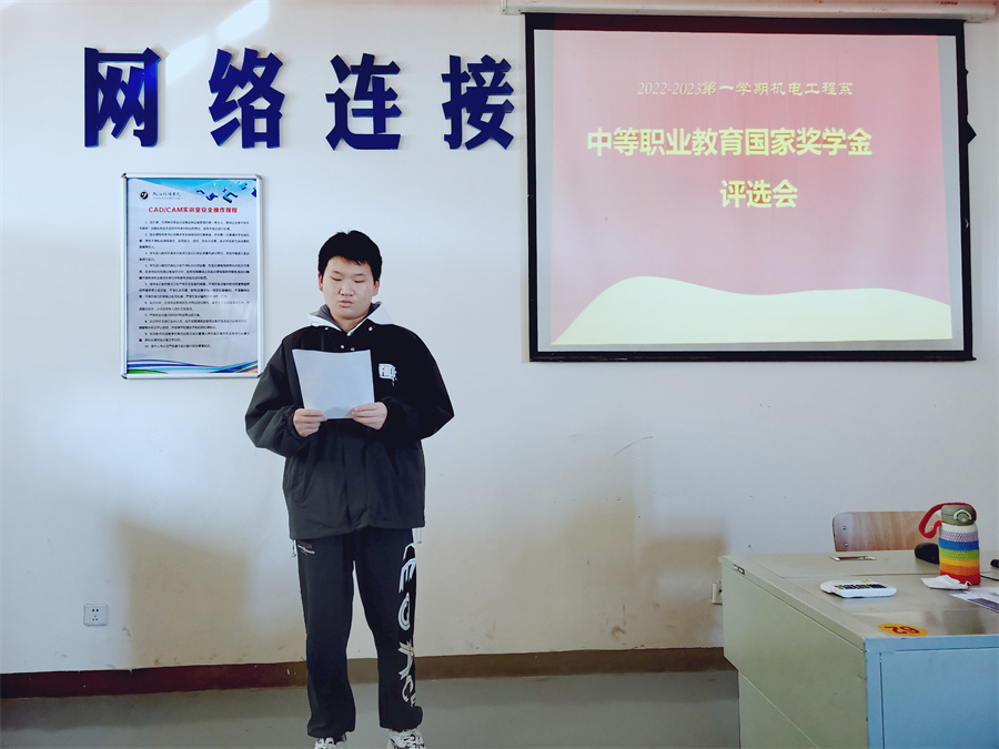 为全面做好此项工作,机电工程系前期进行了宣传发动——首先借助全体班主任会议宣讲了此事,号召班主任鼓励在校生制订短期和长期奋斗目标,努力争取参选资格,随后按照上级文件要求,经个人申请、班主任初审报送名单和个人材料到系部学生科进行综合评选。