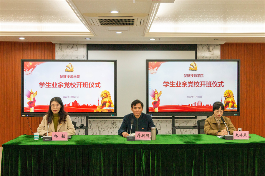 习近平总书记曾经说过,青年是祖国的未来,民族的希望,也是我们党的希望和未来。为牢牢把握团结奋斗的时代要求,进一步加强爱党爱国爱社会主义教育,一步一个脚印把党的二十大作出的重大决策部署付诸行动、见之于成效,11月23日,仪征技师学院举行了2022年度学生业余党校开班仪式暨党课第一讲。仪征技师学院党委书记蒋朝明、纪委书记赵海燕出席开班仪式。开班仪式由学院团委书记杨敏主持,全体团干部、业余党校学员参加活动。