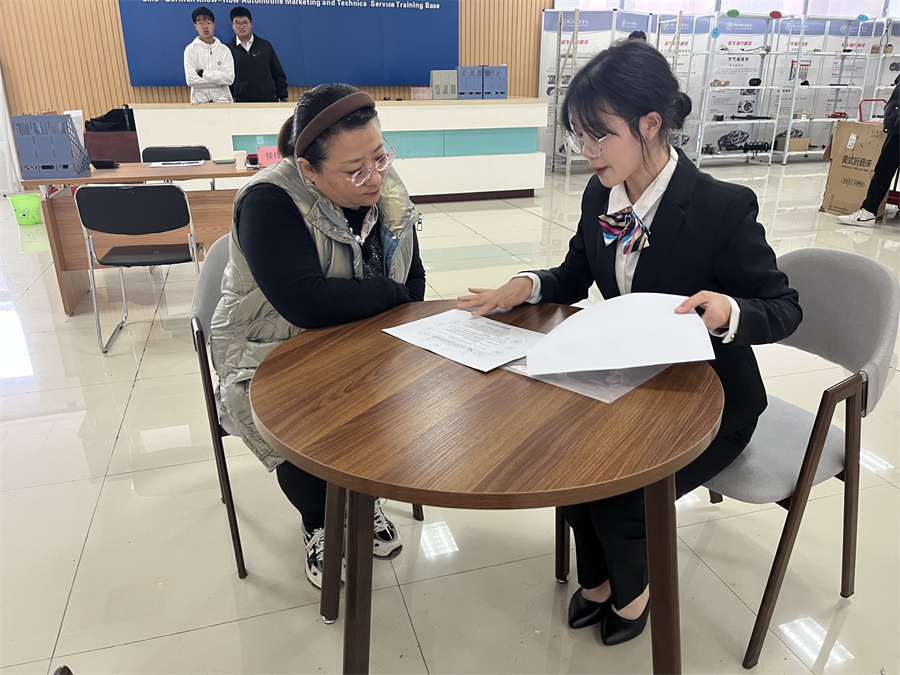张曹燕是汽车系19中德诺浩班的一员女生。虽然班级里男生多,但她顶住压力,凭自己的努力成为了营销赛项的佼佼者。入学四年来,她前三年有大半的时间都是在营销集训队里度过的。在这里哭过,笑过,努力过,获得了很多的专业知识,多次代表系部参加扬州市和江苏省的技能大赛,并多次获奖。