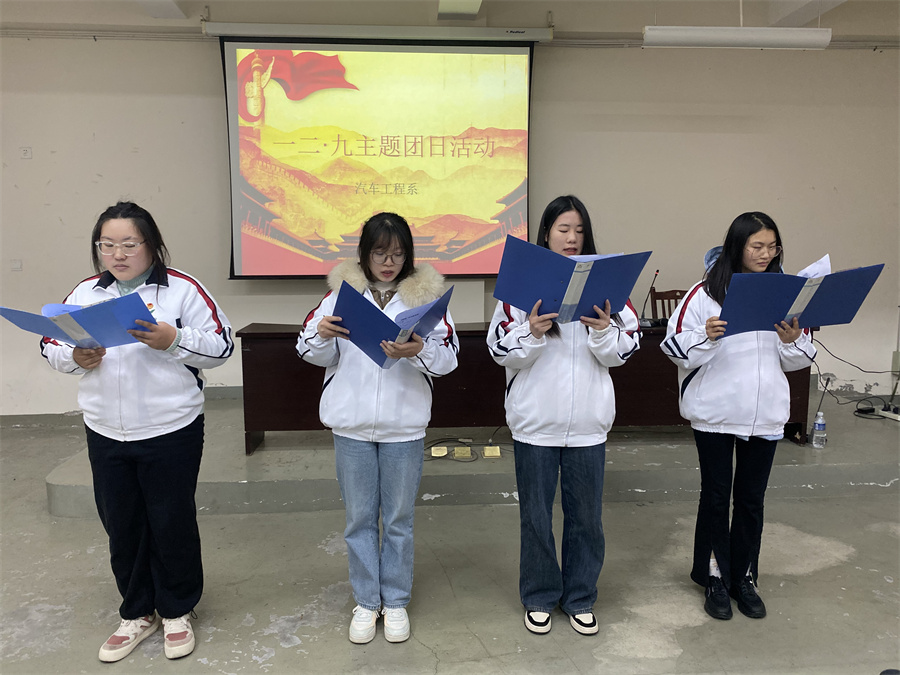 12月8日下午在B108教室,汽车工程系团总支组织了纪念“一二•九”运动主题团日活动,陈婧书记带领大家重温了入团誓词,余志勇副书记带领全体团员唱了团歌,学习了团章,观看了“一二•九”运动相关视频。随后,今年新团员给大家带来了诗歌朗诵《永远跟党走》和小合唱《我和我的祖国》,最后大家学习了《二十大知识快问快答》。