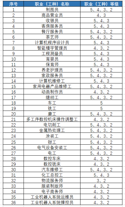 五、面向社会可开展的认定工种