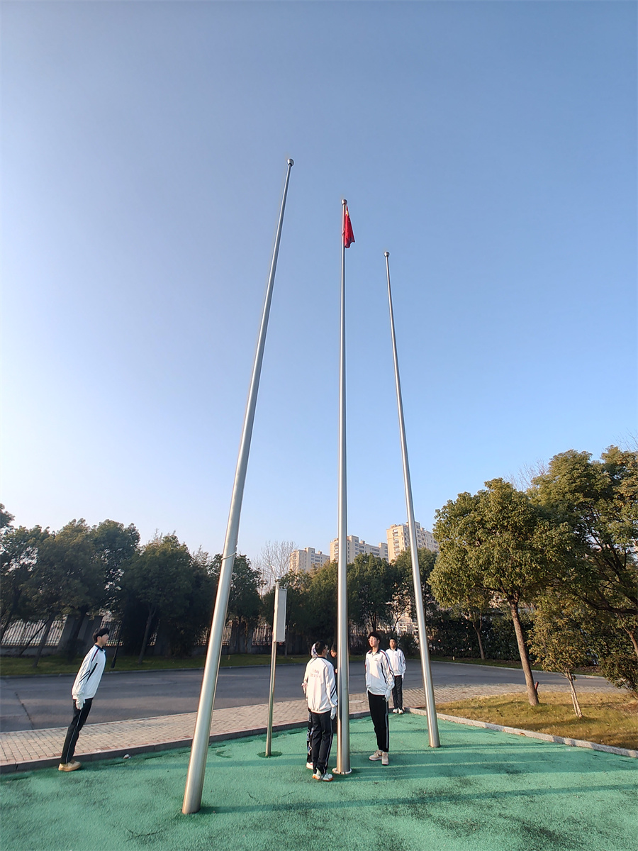 随着一声“升旗仪式现在开始”,国旗班的同学迈着威武的步伐走向升旗台,庄严的国歌声中,五星红旗冉冉升起。全体师生肃然面向国旗行注目礼,表达对祖国无限的热爱和崇高的敬意。