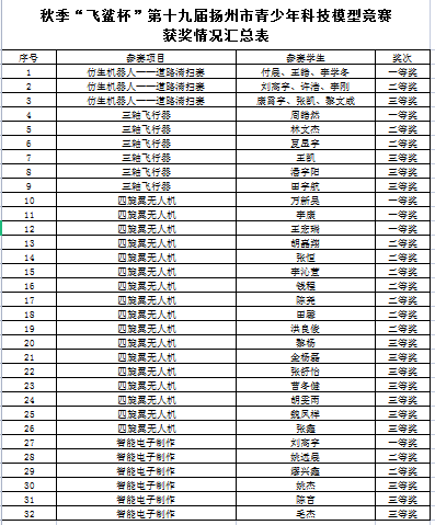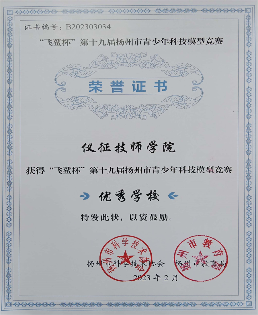 日前,第十九届扬州市青少年科技模型竞赛活动结果揭晓,仪征技师学院共有32个项目获奖,学院获优秀学校奖。