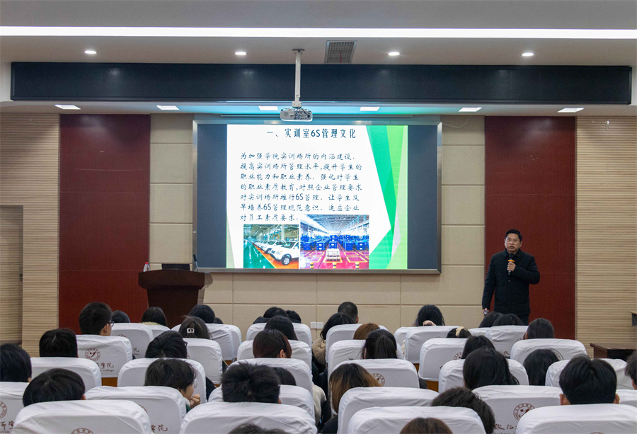 景老师以实训室6S管理文化为导入点,从“专业、专心、传承、创新、责任、担当”等方面诠释了“工匠精神”,并强调工匠精神是一种信念,执着和信仰,是一种对工作的坚持,是自我能力的提升,同时也是一种精神的传承。