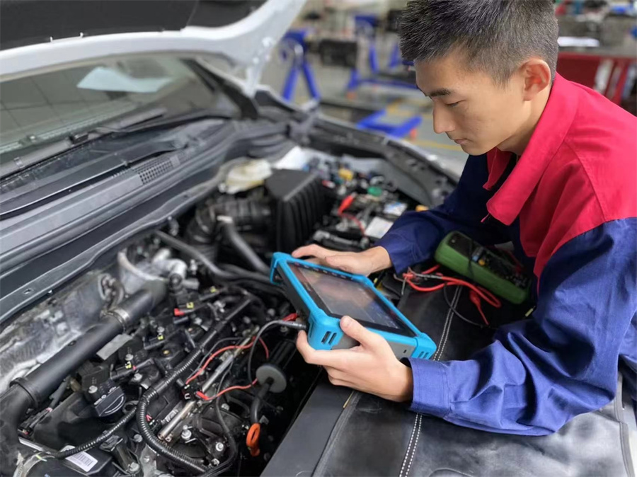出去比赛,我也看到自己的不足。在理论考试环节,我没有发挥出理想的水平。尽管竞赛指导杨定军老师为我们用“云班课”编制了题库,平时训练完成得很好。但是竞赛时,试题选项被调整了顺序,我立刻紧张了起来,这时才发现很多知识点没有真正理解。现场出分时,理论得分落后其他选手。在“汽车维护”赛项中,由于过度紧张,再加上比赛时现场车辆又出现了突发状况,考试节奏完全被打乱。