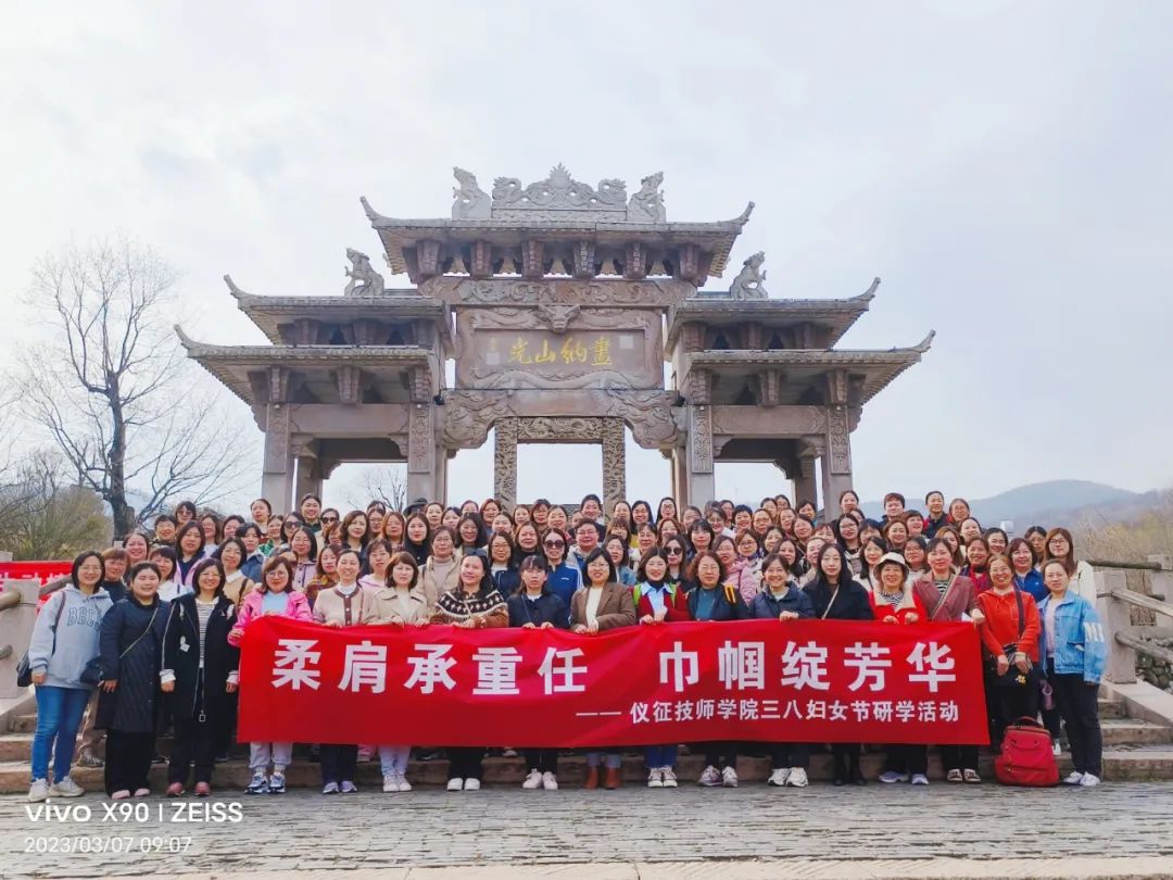 为庆祝“三八”国际劳动妇女节,3月7日,仪征技师学院组织女教职工前往句容开展文化研学活动。女教职工来到宝华山国家森林公园,参观了坐落在宝华山山顶的隆昌寺。随后下山,大家沿着河道漫步,在蓝天白云的映衬下,体验时光倒流,探寻悠悠古镇。