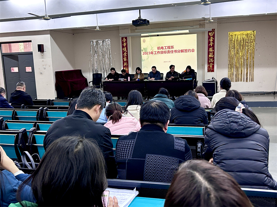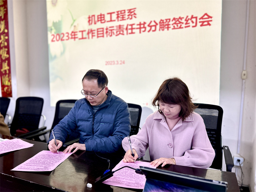 3月24日下午,机电工程系在C107召开2023年工作目标责任书分解签约大会,学院纪委书记孙苏扬出席会议。会议由党支部书记赵娟主持,系部全体教师参加。
