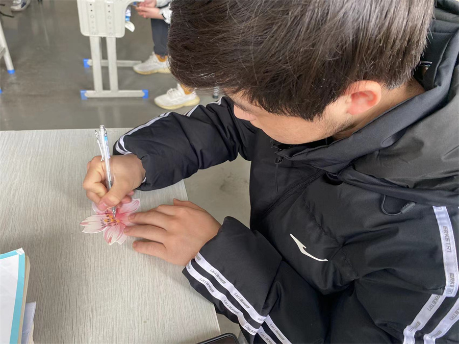 各班级认真传达倡议内容,组织学生观看“文明祭扫”视频,在卡片上写下自己对亲人的哀思,号召同学们扫墓时为逝者献一束花、植一棵长青树,表达缅怀之情。