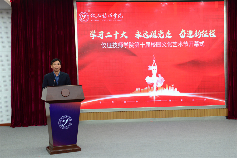 2023年是全面贯彻落实党的二十大精神开局之年,为深入学习宣传贯彻党的二十大精神,教育引导广大青少年厚植爱党、爱国、爱社会主义的情感,带领广大青年把爱国精神熔铸于心,奏响青春最强音,4月26日下午,仪征技师学院第十届校园文化艺术节开幕式在图文信息楼十楼报告厅举行。仪征技师学院党委书记蒋朝明,副院长凌洪斌、副院长周万春、副院长赵海燕,各部门负责人、党支部书记、团总支书记及师生代表参加活动。