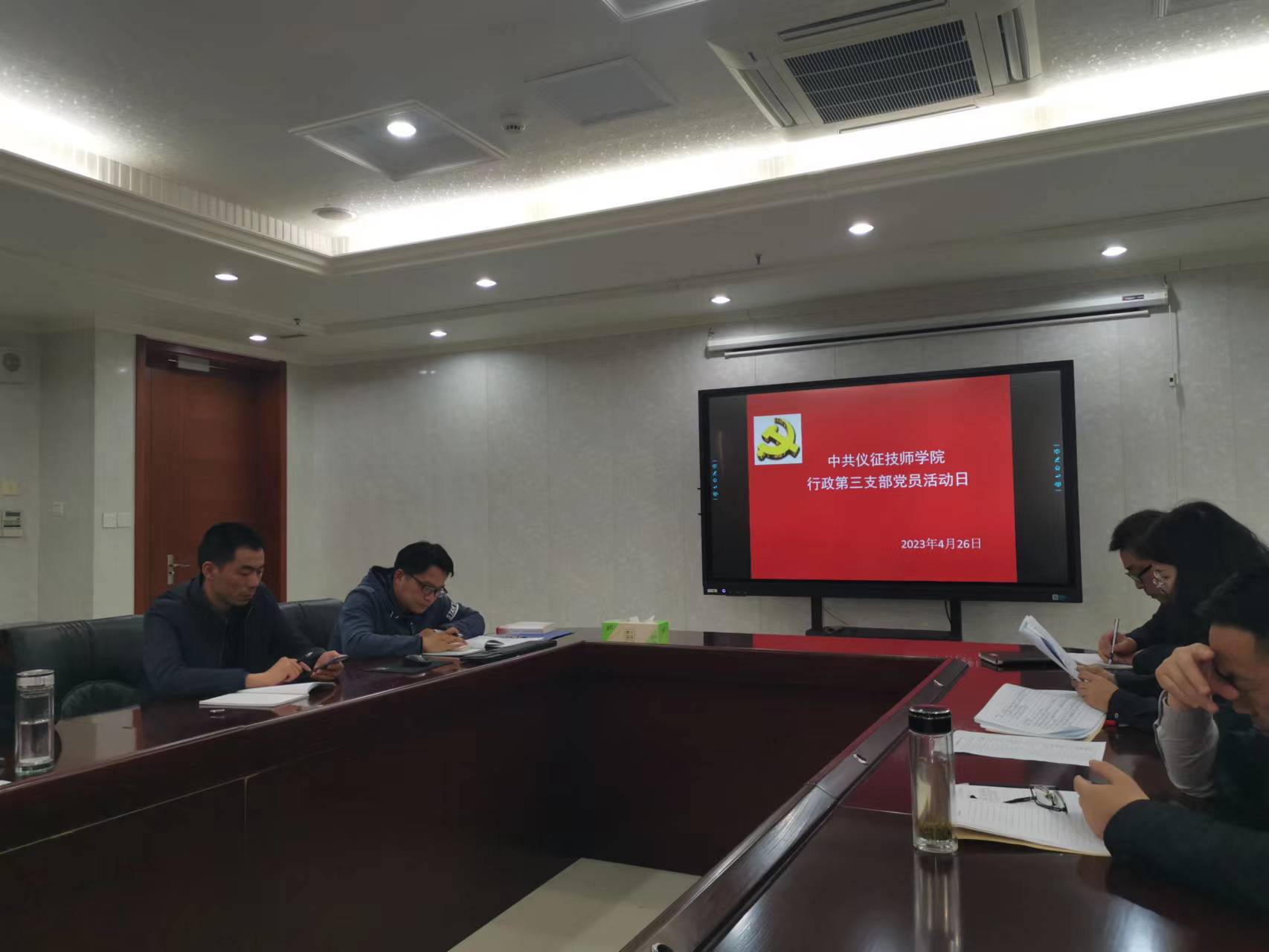 4月26日下午,行政第三党支部在图文信息楼901会议室举行4月份“党员活动日”活动,支部书记夏桂荣主持会议。