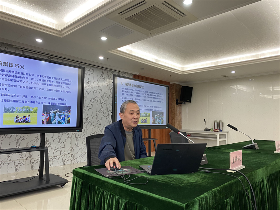 仪征市人武部周晓明主任作《新闻摄影技巧与心得》专题讲座。周主任结合自身多年工作实践,运用丰富的经验和专业知识,围绕新闻的定义、新闻与图片的关系、新闻图片拍摄、特定场景拍摄技巧、手机拍摄等方面,进行了详细解读和分享。内容详实丰富,实用性强。