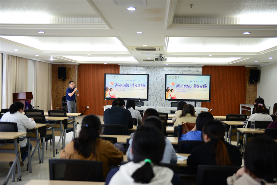 2023年5月25日是第十七届“全国护肤日”,为普及科学护肤美容知识,满足广大教职工对于护肤知识的需求,5月24日下午,仪征技师学院在图文信息楼九楼电教室举行“科学护肤 青春飞扬”专题讲座。此次讲座由中国医师协会、中国医师协会皮肤科医师分会、仪征市人民医院主办,仪征技师学院承办,各部门教职工代表参加。讲座由仪征技师学院妇联主席时晓倩主持。