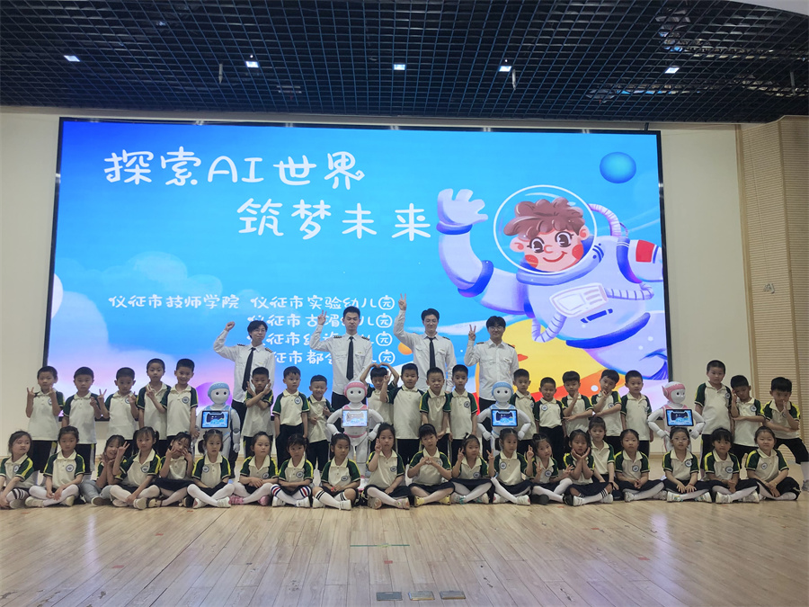 仪征市技师学院“机器人+”专业项目组与仪征市实验幼儿园多次对接,将人工智能i宝机器人带到实验幼儿园儿童节的活动现场进行互动,让小朋友们充分体验AI智能科技带来的全新感受。这也是学院机器人专业建设赋能幼儿教育的一次成功实践。