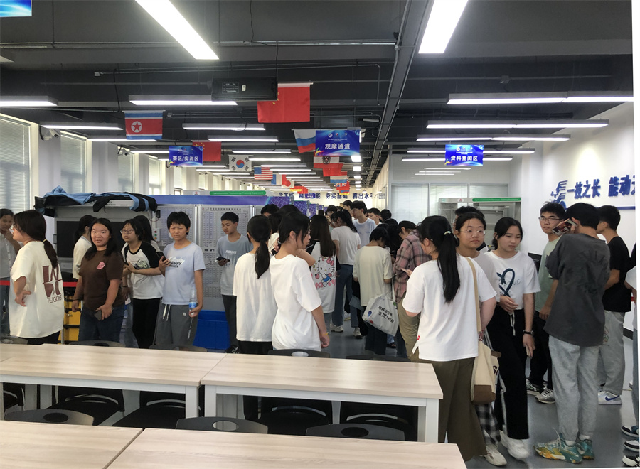 新生见面会后,科创办相关教师带领学生参观了光电技术实训基地、线上线下体验中心、新仪坊创业街等实训基地。