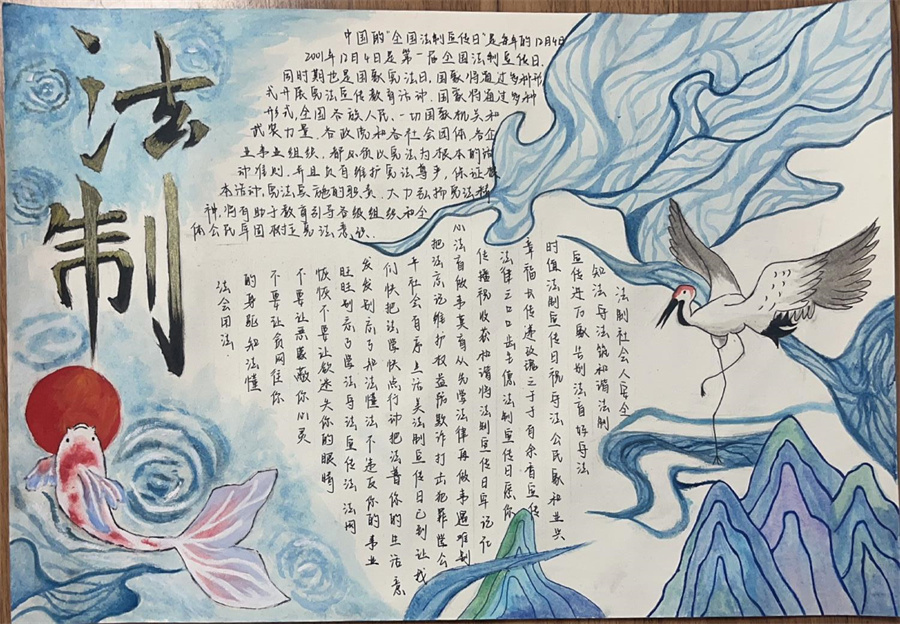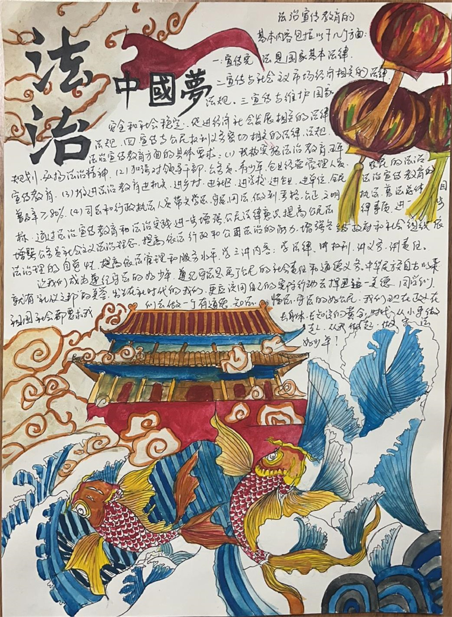 为深入学习贯彻习近平法治思想,推进青少年法治教育走深走实,加强青少年尊法、学法、守法、用法意识,仪征技师学院开展“关爱明天 普法先行”法治主题绘画、手抄报和黑板报评比活动。