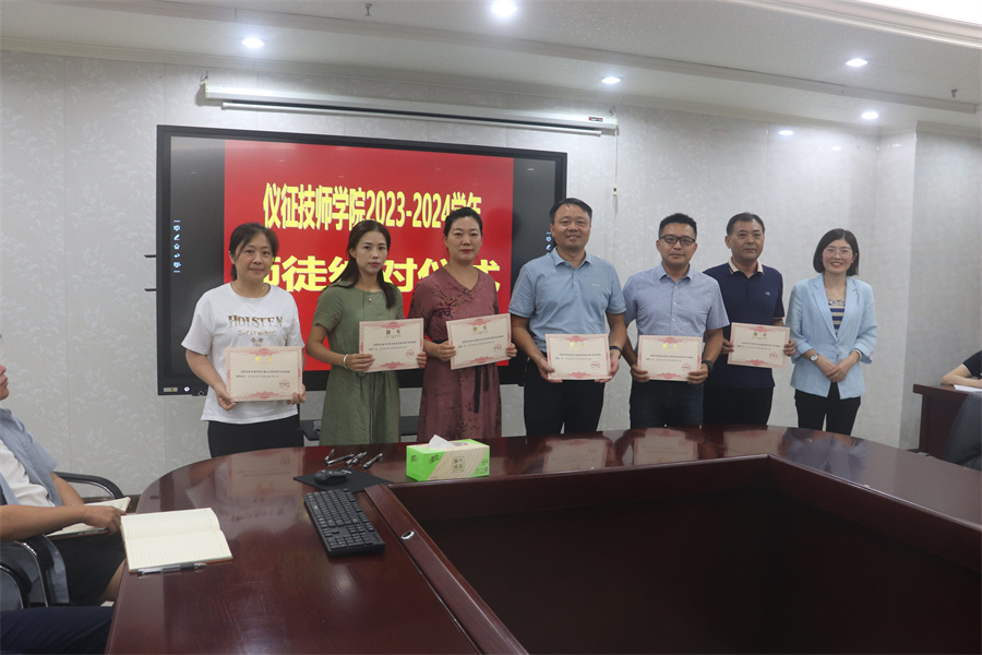 为有效提升学院教师队伍质量,充分发挥骨干教师示范、指导、引领和辐射作用,实现骨干教师与青年教师的“双向成长、互利共赢”,营造互帮互学、共同进步的良好教育教学氛围,9月13日下午,仪征技师学院在图文信息楼901会议室举行2023-2024学年师徒结对仪式,教研室相关成员以及结对师徒参加活动。