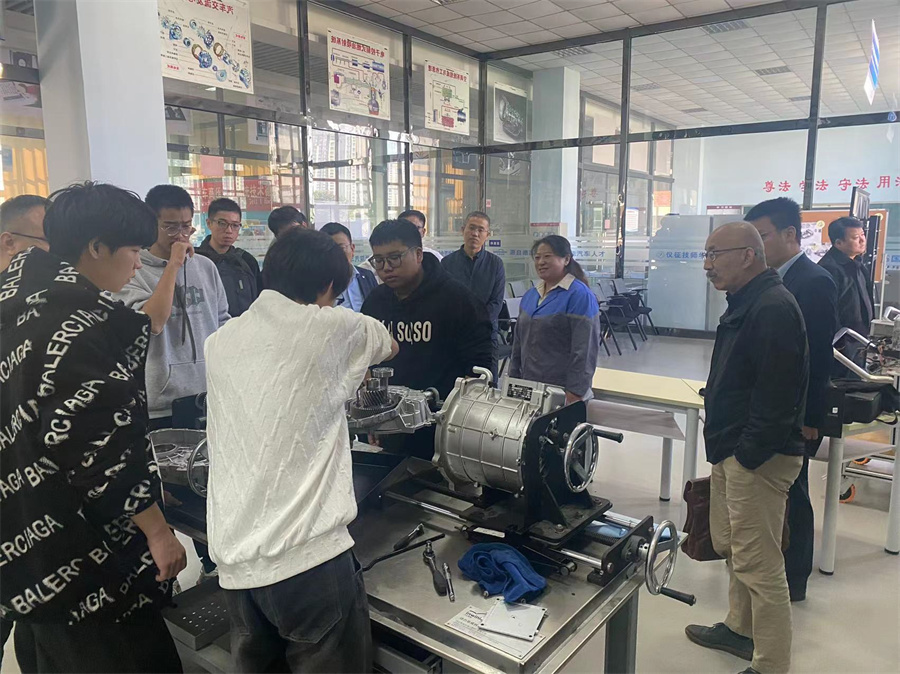 会后, 谭教授一行参观了学院国家级高技能实训基地,重点对中德新能源汽车能力中心、光电技术项目省赛集训地、中德诺浩营销实训基地以及设在我院的江苏省云教学大数据中心做了实地考察。