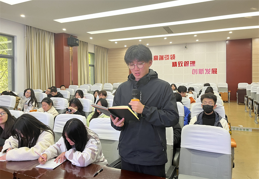 11月15日,电子信息系团总支组织全系团员开展“筑牢思想根基 坚定理想信念”主题团课。主题团课由团总支书记束颖丹主持。