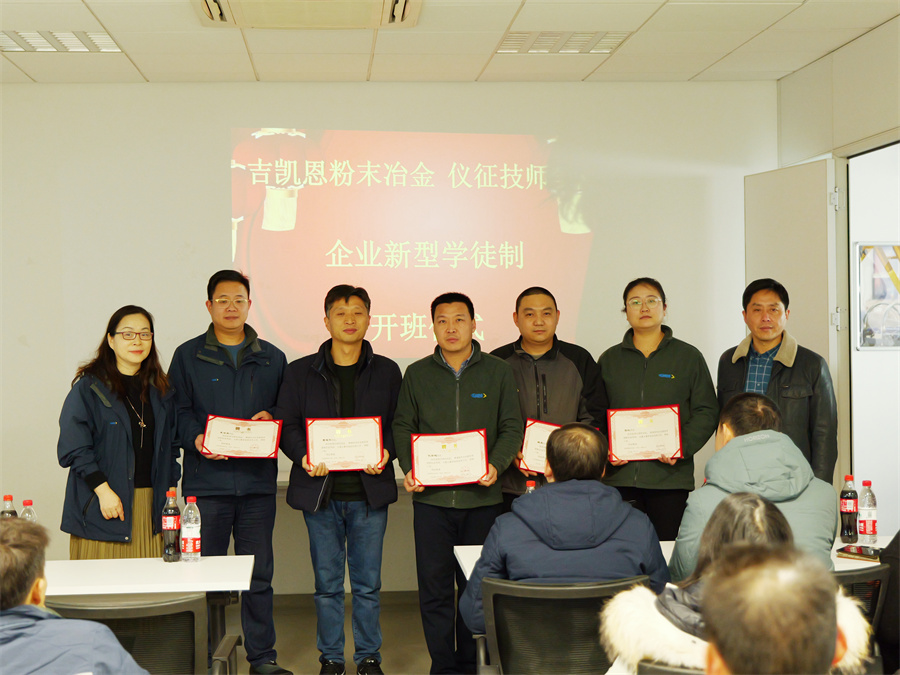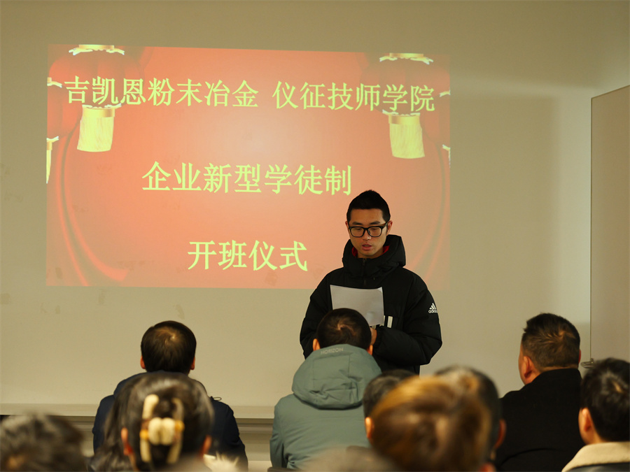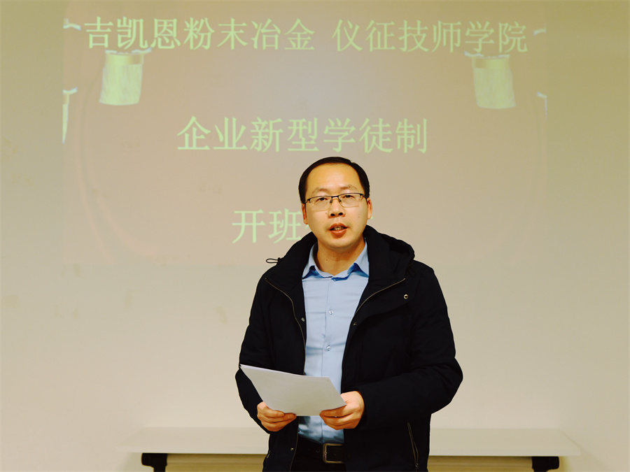 为进一步提升企业员工综合技能,加快知识型、技能型、创新型人才队伍建设,全方位、多层次地培养高素质技术技能人才,1月5日下午,仪征技师学院与吉凯恩粉末冶金(仪征)有限公司联合举办2024年度“企业新型学徒制”开班仪式。吉凯恩粉末冶金亚太区副总裁孙宏宇、仪征技师学院纪委书记孙苏扬、培训处处长朱波、机电工程系副主任陈隶源、校企培训相关人员参加开班仪式。