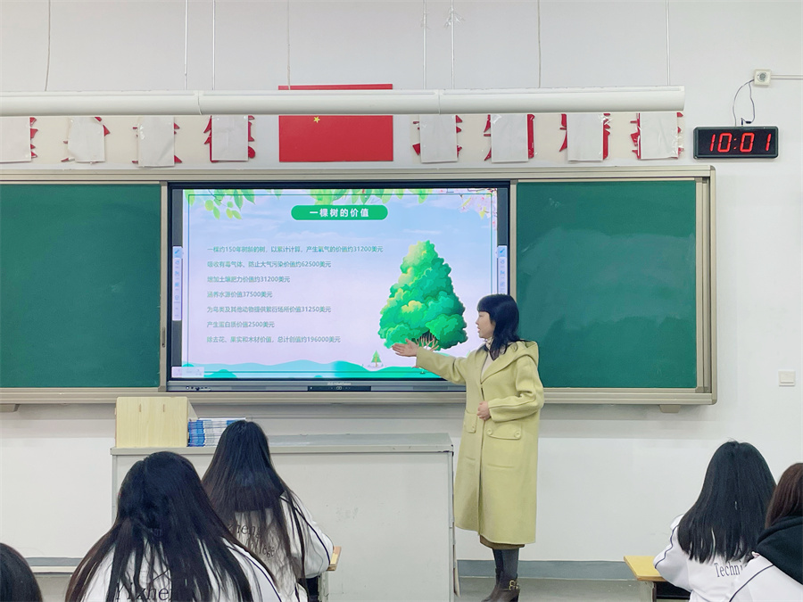 大家一起了解了植树节的由来、意义,植树节趣闻等。通过观看视频和图片,同学们知晓了树的巨大价值:维护地球生态系统、净化空气、涵养水源,保持水土,防风固沙,提供丰富的食材、药材和木材资源,具有极高的经济价值和生态价值等。大家围绕植树节的相关知识、树的益处等进行了知识问答,互动积极,回答踊跃。机电工程系魏海燕老师呼吁大家一起行动起来,关注校园树木,积极参与植树,提高环保意识,保护生态环境。