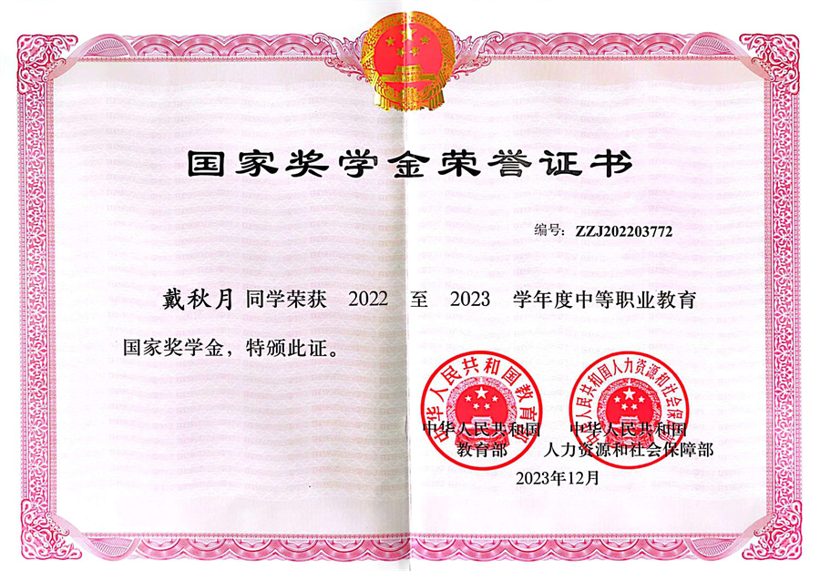 青春因磨砺而出彩,人生因奋斗而升华。在2022-2023学年度中等职业教育国家奖学金评审中,仪征技师学院基础部24高考计算机酒店班戴秋月同学获得了此项荣誉。