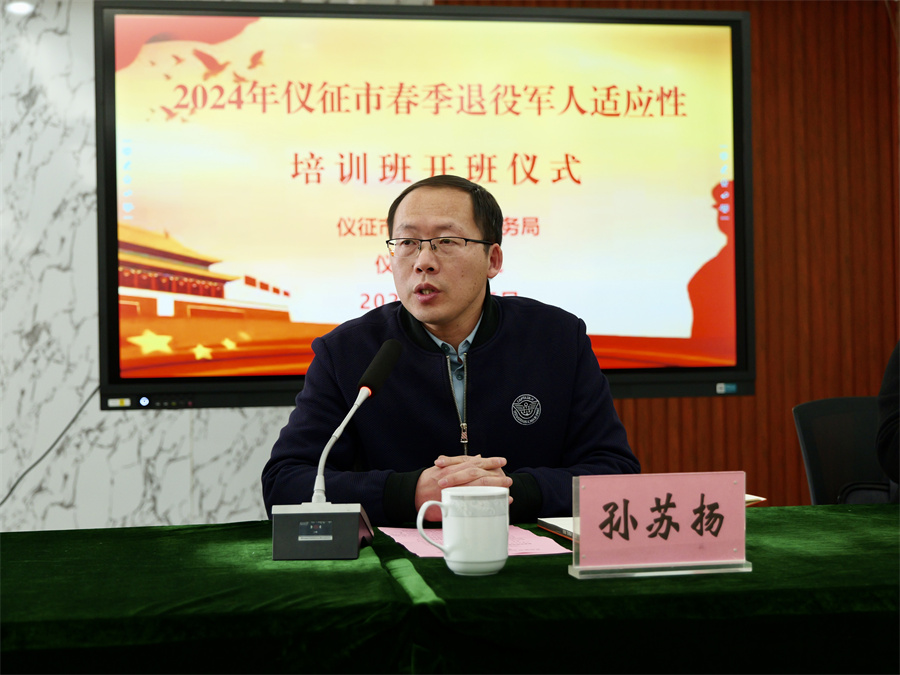 为进一步做好退役军人服务保障工作,帮助退役军人做好角色转换和职业生涯规划,提高就业创业能力,3月15日下午,由仪征市退役军人事务局主办,仪征技师学院承办的仪征市2024年春季自主就业退役士兵返乡欢迎暨适应性培训班在仪征技师学院举行开班仪式。仪征市退役军人事务局副局长高浏稳、仪征技师学院纪委书记孙苏扬出席开班仪式并讲话。