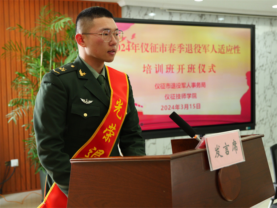 2024年春季退役士兵尹罡作为学员代表做表态发言,他表示:站在新的起点,即将迎接新的挑战,将倍加珍惜此次培训机会。一是做到认真学习,尽快实现角色转变、适应社会发展;二是做到严格遵守培训纪律,自觉服从管理;三是做到退役不褪色,继承发扬部队光荣传统和优良作风。