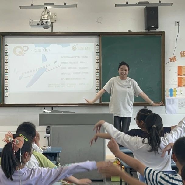 高精人才联合培训中心教员生动地介绍了空中交通工具发展史、飞机分类、外形结构及用途,同时和学生们进行精彩的互动。